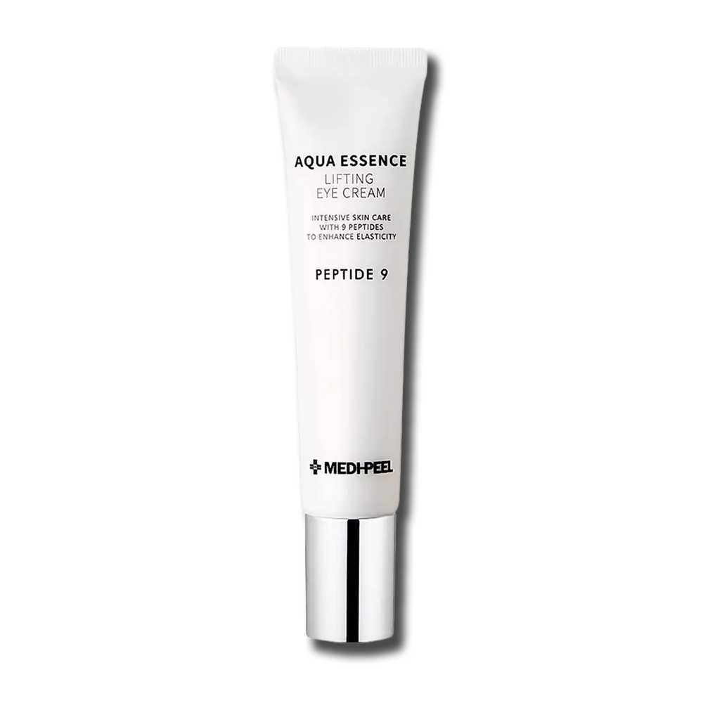 Medipeel Peptide 9 Aqua Essence Lifting Eye Cream — легкий, але потужний крем для зони навколо очей із 9 пептидами, гіалуроновими комплексом та амінокислотами. Подарує ліфтинг, зменшення зморшок, освіження погляду та інтенсивне зволоження.