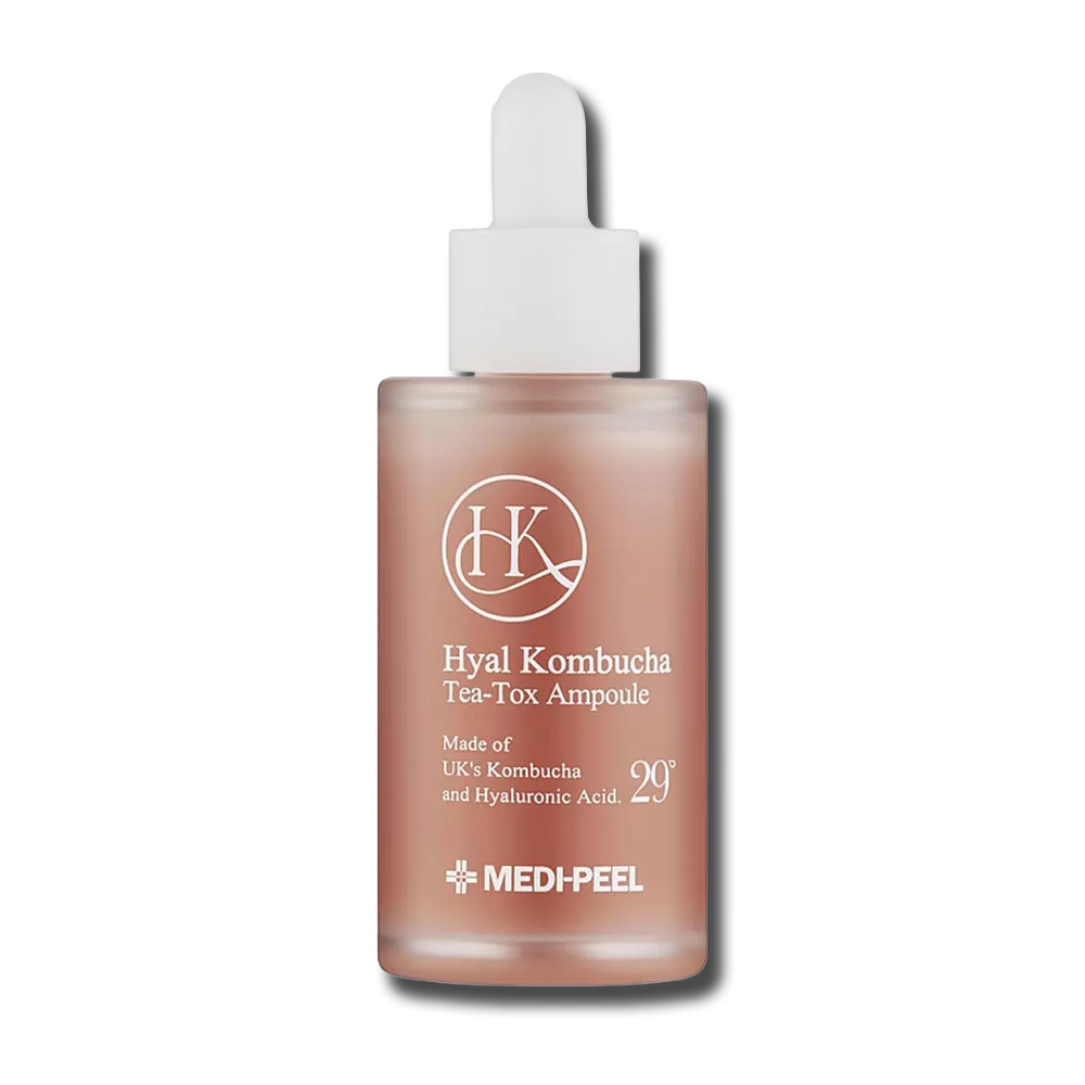 Medipeel Hyal Kombucha Tea‑Tox Ampoule — концентрований ампульний догляд з комбінацією 8 типів гіалуронової кислоти, нано‑комплексом камелії (чайний детокс), пантенолом і ніацинамідом. Допомагає глибоко зволожити шкіру, заспокоїти подразнення, повернути сяйво та підсилити антиоксидантний захист, ідеальний для щоденного відновлення.