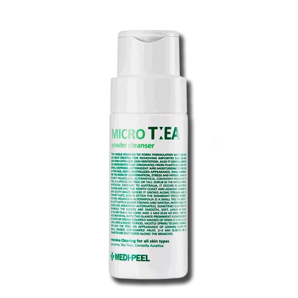 Medipeel Micro Tea Powder Cleanser — веганський порошкоподібний очищувач з 100 % органічним австралійським маслом чайного дерева і мікробульбашками, що активуються водою. Забезпечує глибоке, але делікатне очищення, звужує пори, контролює себум і освіжає шкіру, не порушуючи її гідробаланс.