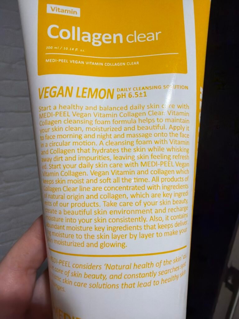 Medipeel Vegan Vitamin Collagen Clear — гелево-пінна глибоко очищувальна формула з 12 видами ліпосомальних вітамінів, веган-колагеном, глутатіоном і AHA-лимонною кислотою. Підходить для щоденного використання, забезпечує сяйво, звуження пор і оновлення шкіри.