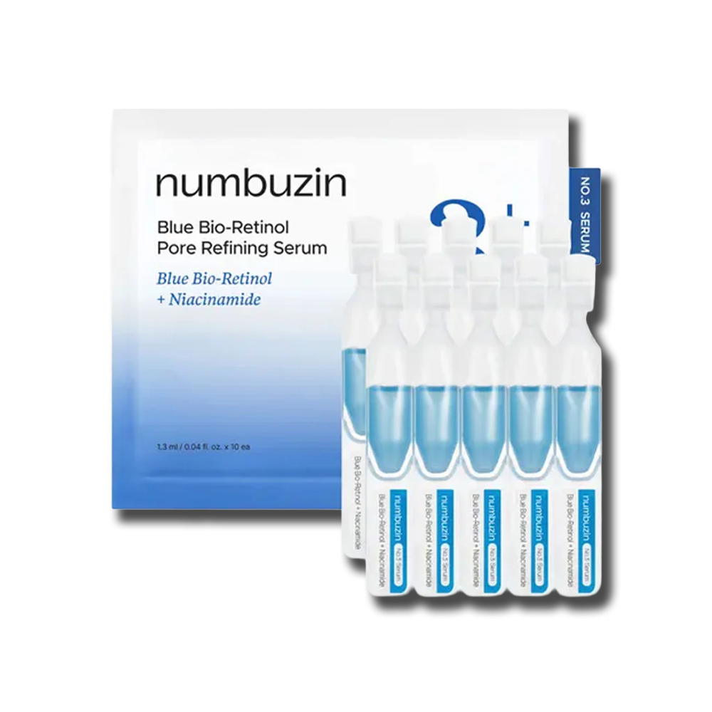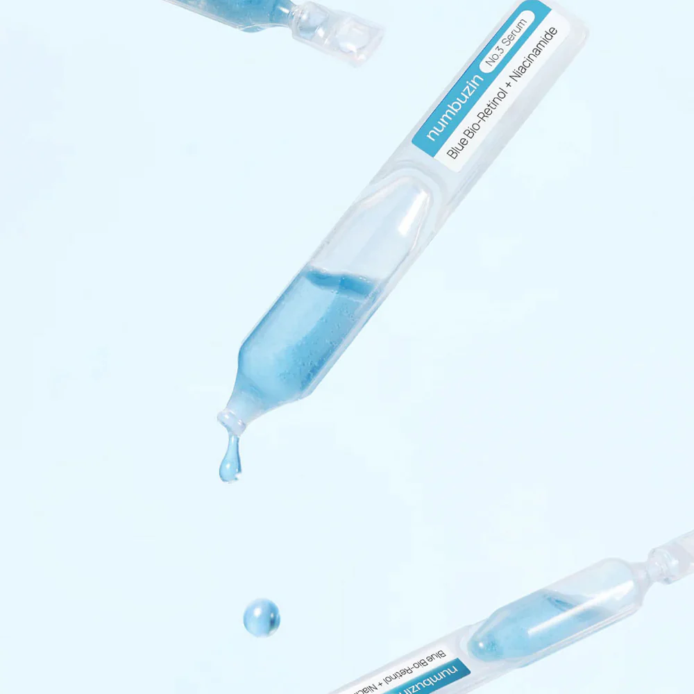 Numbuzin No.3 Blue Bio-Retinol Pore Refining Serum – сироватка з біоретинолом, ніацинамідом та пептидами для звуження пор, покращення текстури шкіри та делікатного антивікового догляду.