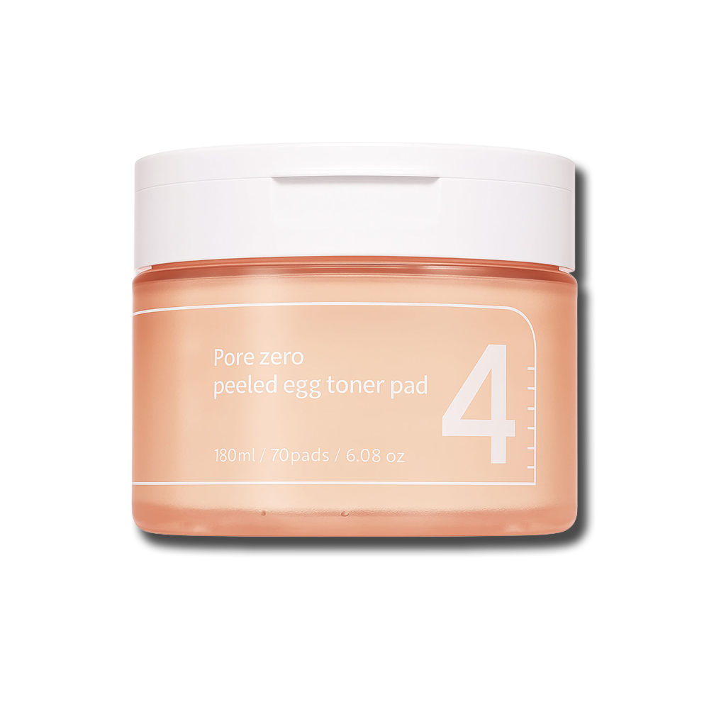 Numbuzin No.4 Pore Zero Peeled Egg Toner Pad – тонер-педи у формі дисків забезпечують м’яке, але ефективне очищення шкіри, усувають ороговілі клітини, вирівнюють текстуру та звужують пори. Ідеальні для щоденного використання, особливо для комбінованої та жирної шкіри.