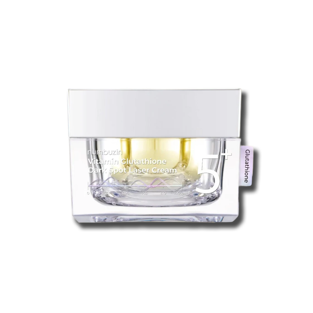 Numbuzin No.5 Vitamin Glutathione Dark Spot Laser Cream – концентрований освітлювальний крем для боротьби з пігментними плямами, постакне та нерівним тоном шкіри. Формула з глутатіоном, ніацинамідом і стабільними формами вітаміну С допомагає зробити шкіру більш рівною, сяючою та доглянутою.