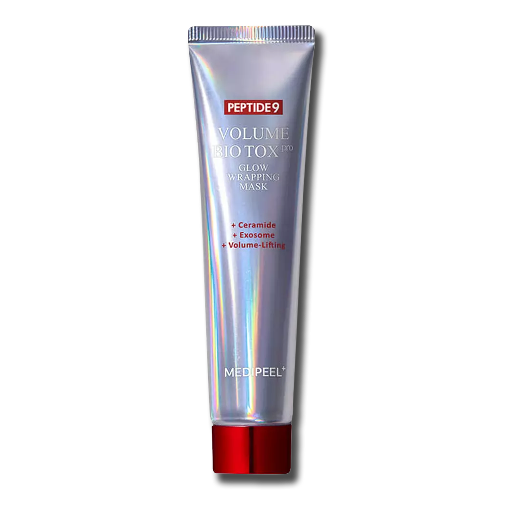 MEDIPEEL Peptide 9 Volume Bio Tox Glow Wrapping Mask — плівкова маска з ефектом ліфтингу, збагачена 9 типами пептидів, молочними екзосомами, керамідами й зволожуючими компонентами. Допомагає зміцнити шкіру, вирівняти тон та підсилити сяйво.