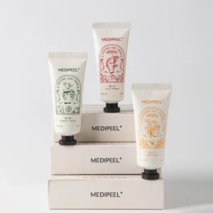 Medipeel Special Perfumed Hand Care Set — елегантний набір із трьох ароматизованих кремів для рук (30 мл кожен): свіжо-древесний (#1 Fresh Woody), фруктово-пудровий (#2 Fruity Powdery) та квітково-трав’яний (#3 Aromatic Floral). Формули збагачені ши, колагеном, гіалуроном, керамідами та вітамінним комплексом для інтенсивного догляду і шовковистості рук.