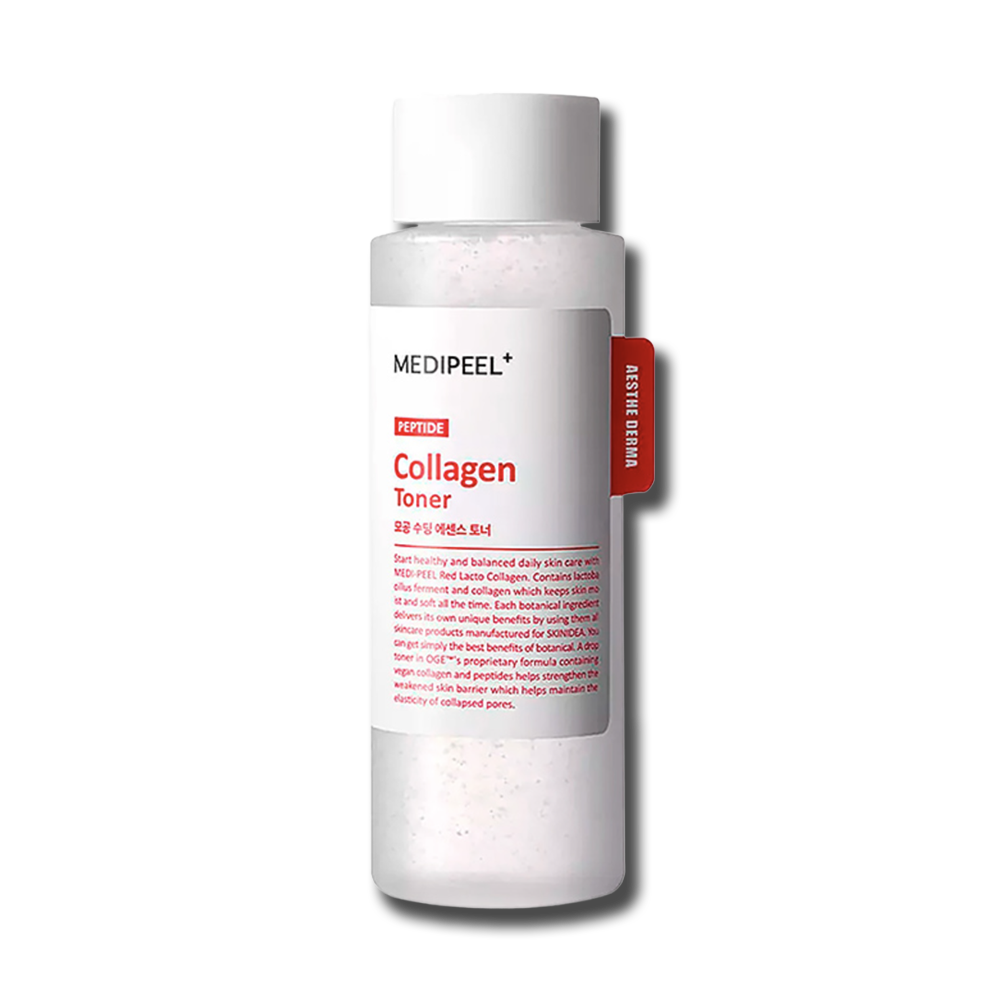 Medipeel Red Lacto Collagen Soothing Essence Toner – багатофункціональний тонер-есенція з колагеном, ферментованими лактобактеріями та пептидами. Покращує пружність, зменшує пори і утримує глибоке зволоження, створюючи сяючий тон.